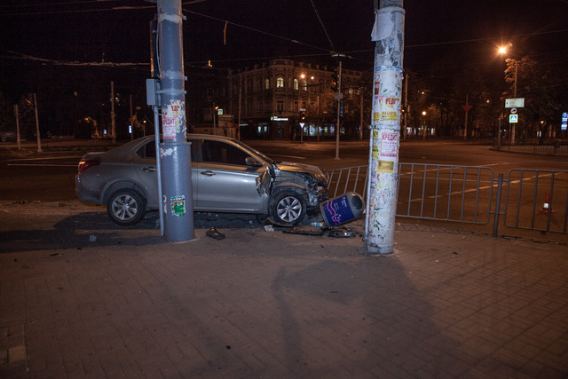 По словам полиции, водитель на Citroen двигался по улице Княгини Ольги в сторону «Озерки» и проехав перекресток с проспектом Яворницкого, влетел в оградительный забор. Далее, он снес две урны и остановился на тротуаре. В результате столкновения, никто не пострадал. Досталось больше всего автомобилю, у него разбит весь перед и боковая часть.