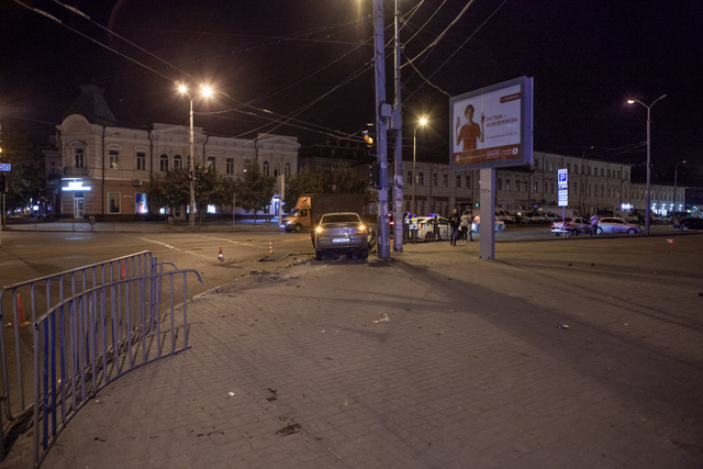 В среду, 4 сентября, в 01:30 на проспекте Яворницкого произошло ДТП. Автомобиль Citroen C-Elysee снес оградительный забор и выехал на тротуар.