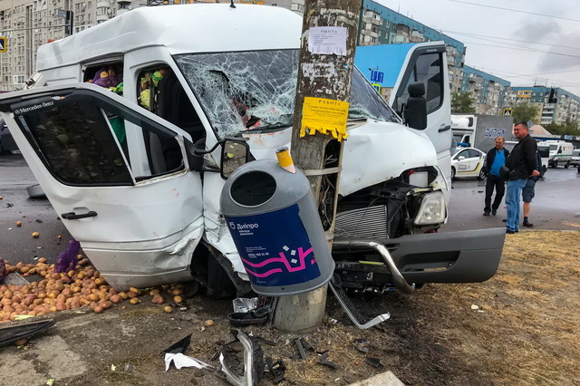 Предварительно известно, что Mercedes Sprinter ехал по Донецкому шоссе в сторону Кайдакского моста, когда с улицы Высоцкого выезжала Suzuki. Пока неизвестно, кто кого не пропустил (этот вопрос сейчас выясняет следователь по ДТП), но на перекрестке микроавтобус на полном ходу влетел в иномарку.