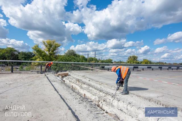 В Каменском продолжаются работы по капитальному ремонту деформационных швов на мосту через реку Днепр. 19 сентября глава города Андрей Белоусов побывал на объекте с проверкой.
