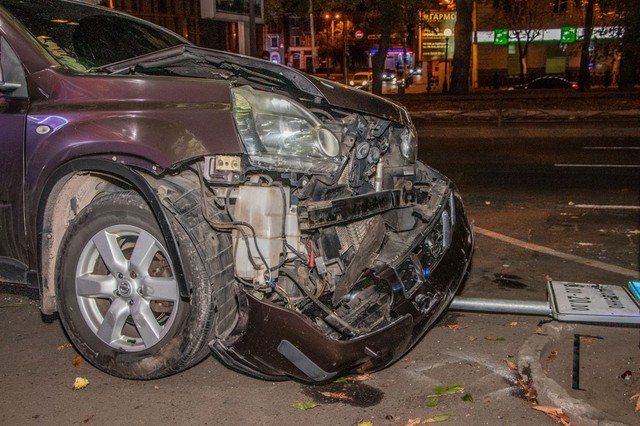 В пятницу, 20 сентября, на пересечении проспекта Дмитрия Яворницкого и улицы Михаила Грушевского столкнулись Nissan и Mercedes. Удар оказался достаточно сильным: автомобили отбросило на тротуар.