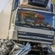 После аварии грузовик сильно поврежден: часть металлического отбойника буквально намотало на передние колеса. Также у автомобиля разбиты стекла и вырвана одна из фар.