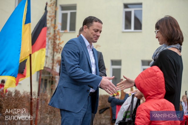Открывали новый объект социального жилья Каменской городской голова Андрей Белоусов, вице-консул Германии в Донецке Питер Шмаль и исполнительный директор Украинского фонда социальных инвестиций Андрей Лактионов.