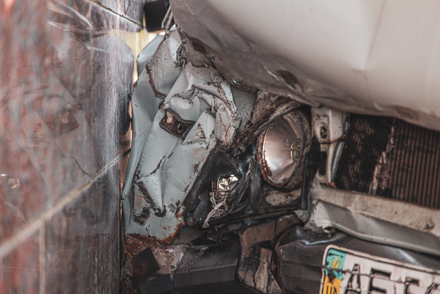По предварительной информации, ВАЗ ехал вниз по Юрия Кондратюка в сторону Набережной Заводской. То ли мужчина не справился с управлением, то ли перепутал дороги (одна из них ведет к набережной, другая, левее, — к «подземке»), но он на полной скорости врезался в здание подземного перехода к станции метро «Покровская».