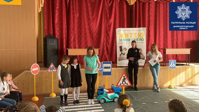 Правоохоронці разом з представниками громадської організації «Життю зелене світло» проводять уроки ПДР для малечі початкових класів.