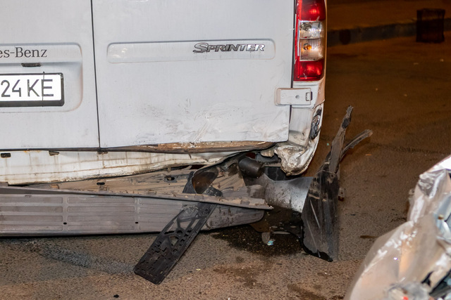 Однако водитель Mercedes рассказал, что в момент аварии он находился в машине и уже завел ее, но не выезжал. В это время в него въехал Nissan. Удар был такой силы, что Mercedes Sprinter, по словам водителя, отбросило в сторону.