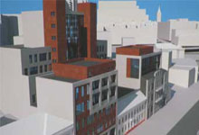 Как выяснилось, заказчику досталась довольно непростая площадка. Во-первых, здесь проходит целый «пучок» инженерных коммуникаций, который требует полного обновления и переукладки, в связи с чем возникла необходимость устройства арки с проходной камерой коллектора. Во-вторых, находящиеся на участке два исторических здания явно не способствуют свободе архитектурно-планировочных решений. По словам автора проекта, наличие зданий не дает возможности сформировать цельную композицию новостройки, а также создать яркий акцент, который бы позволил завершить перспективу улицы Шолом-Алейхема. В результате проект предполагает несколько мелкомасштабных раздробленных объемов, соответствующих духу и масштабу исторической застройки.