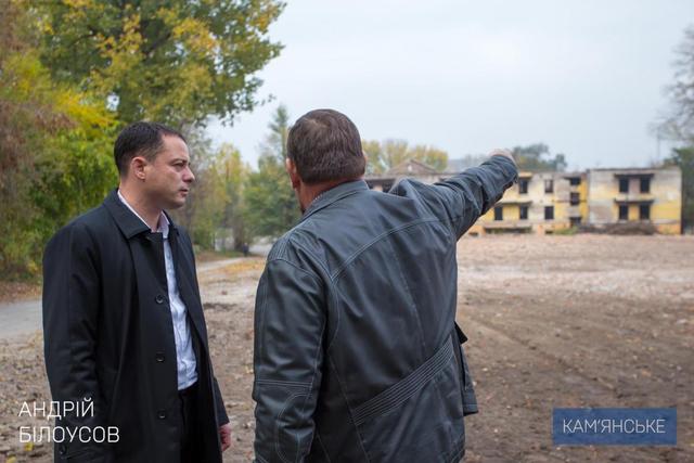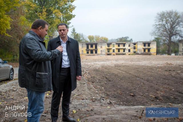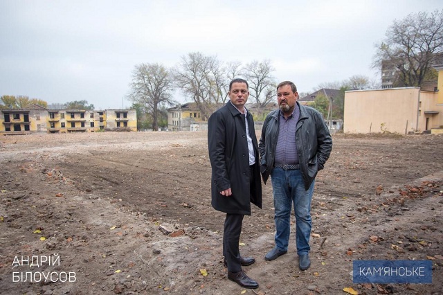 28 октября мэр Каменского Андрей Белоусов выехал на место двух снесенных домов по адресу: улица Долматова, 17 и 19, где встретился с владельцем зданий, депутатом Днепропетровского областного совета Олегом Захорольским.