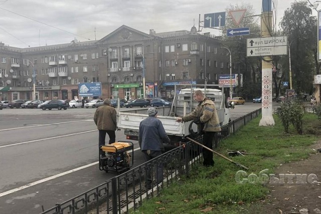 Утром 29 октября сотрудники подрядной организации приступили к демонтажу металлического забора. По словам рабочих, через пару дней на месте старого забора будет установлено новое кованное ограждение, стилизованное под ранее установленные лавочки.