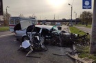 Авария с тремя детьми. В половине девятого утра 1 ноября около Южного моста автомобиль BMW влетел в электроопору.