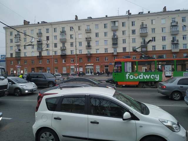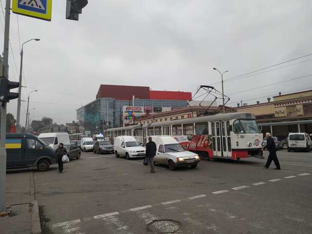 Движение на улице Шмидта в сторону проспекта Яворницкого парализовано. Трамваи №7,12, № 1 и 17 стоят в оба направления.