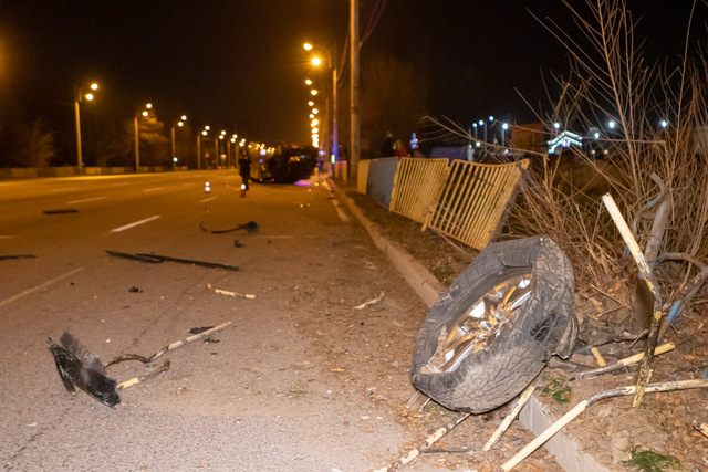 Известно, что водитель иномарки двигался со стороны Подгородного в крайней правой полосе. Автомобиль ехал близко к обочине и в один момент его «повело». Иномарка снесла несколько секций ограждения, потеряла колесо и перевернулась.