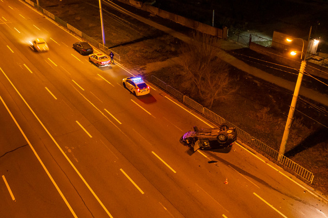 В ночь с воскресенья на понедельник на проспекте Слобожанском перевернулся автомобиль Mazda.