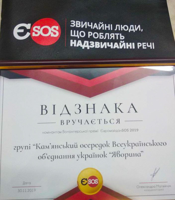 В Киеве прошла VI церемония награждения волонтеров премией «Евромайдан SOS». Каменская ячейка Всеукраинского объединения украинок «Яворина» получил почетное отличие.