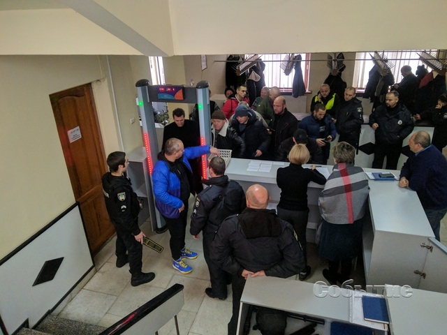 Одной из особенностей сегодняшнего заседания стали усиленные меры безопасности. Практически у всех посетителей здания горсовета проверяют удостоверения личности. Некоторых проверяют с помощью металлоискателя.