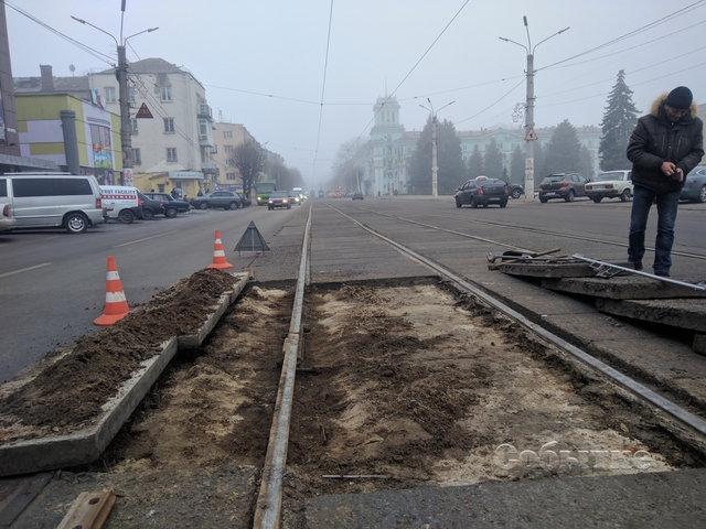 Ремонтные работы на трамвайных путях маршрутов №1 и №4 проходят в районе площади Калнышевского 10 декабря в Каменском.