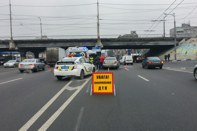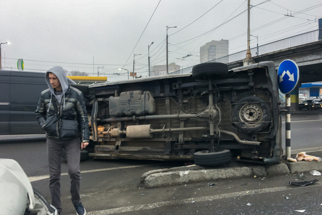 11 декабря около 9:00 на Слобожанском проспекте под виадуком случилась авария. Автомобиль Mercedes Sprinter, ехавший в сторону Правого берега, перевернулся.