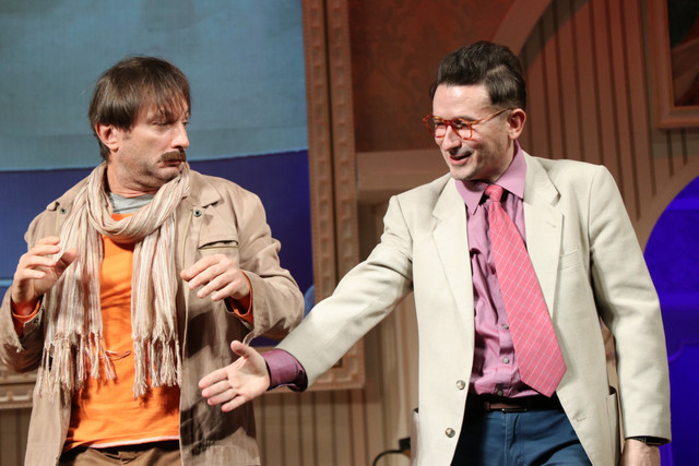На сцене каменского театра пьесу «Ужин дураков» поставил заслуженный деятель искусств Украины Виктор Попов, уже известный нашему зрителю по премьере прошлого сезона – сказке для взрослых «Дракон», пишет 5692. Накануне премьеры режиссер отметил, что работает над непривычным для себя жанром. Комедию положений ранее ему приходилось ставить всего несколько раз. Однако, по словам Виктора Попова, пьеса близка нашему зрителю, потому что внимание и сочувствие ее автора обращено к так называемому «маленькому человеку».