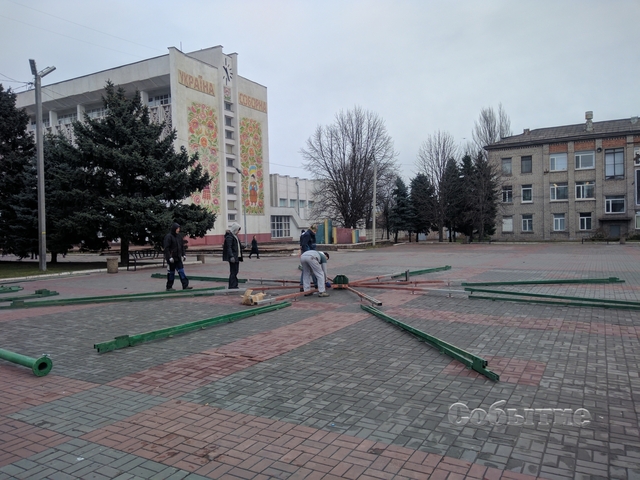 Главную елку Каменского собирают на площади Калнышевского в 10 утра 16 декабря. Как и в предыдущие годы, символ Нового года будет искусственным.