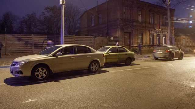 Проошествие случилось около 00:45. По предварительной информации, Toyota ехала по улице Гончара, а Opel — по Паторжинского. Как рассказал водитель Toyota, Opel не уступил ему дорогу и пытался проехать, но автомобили столкнулись. От удара Opel развернуло, и он задом «влетел» в Daewoo, который двигался по Паторжинского ему навстречу.