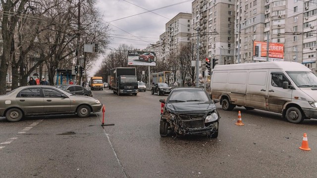 В Днепре на Рабочей столкнулись 4 автомобиля: Honda вынесло на рельсы