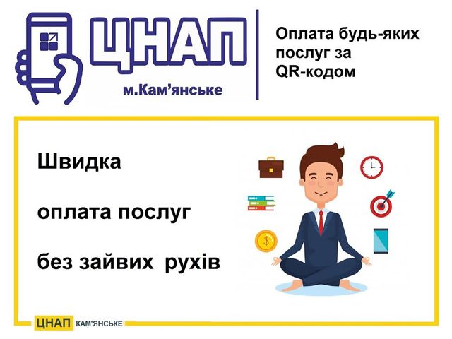 2. Сервис быстрой оплаты услуг в ЦНАП с помощью смартфона. На каждом рабочем месте размещена информация с QR-кодом. Непосредственно во время обслуживания гражданин может отсканировать с помощью смартфона или планшета этот код и по ссылке, через браузер или банковское приложение, оплатить любую из платных услуг, которая предоставляется в ЦНАП. Шаблоны для оплаты уже имеют все необходимые реквизиты.