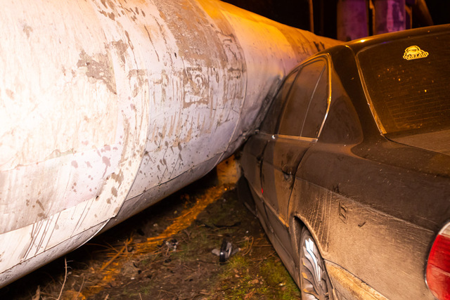 В результате столкновения BMW влетел в бетонную опору. У транспортного средства сильно повреждена передняя часть. У автомобиля Toyota характерные повреждения задней левой стороны.