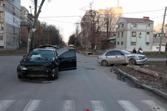 Авария произошла примерно в 13:50. Предварительно известно, что Daewoo ехал вверх по улице Надежды Алексеенко. На перекрестке водитель прогнорировал знак и не пропустил Hyundai, который двигался по Владимира Антоновича со стороны Рабочей, вследствие чего тот ударил его в переднее правое крыло.После удара Daewoo вылетел на обочину, Hyundai же остановился в метре от него. Вместе с тем, оба водителя остались целыми и невредимыми. На место вызвали наряд полиции — инспекторы выясняют все детали происшествия, после чего составят соответствущие материалы. Из-за аварии была перекрыта полоса движения по улице Владимира Антоновича — объезжать приходится по встречке, поскольку один из автомобилей стоит посреди проезжей части.