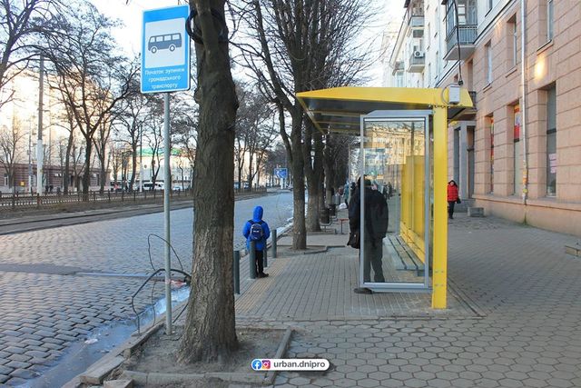 На проспекте Яворницкого установили 5 новых павильонов ожидания общественного транспорта.