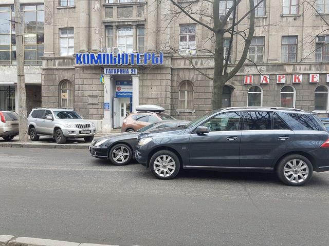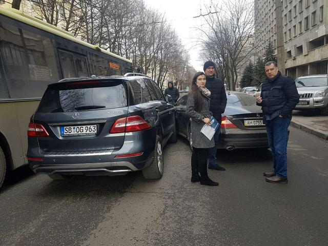 На проспекте Гагарина возле главного корпуса Днепропетровской металлургической академии столкнулись два автомобиля Mercedes, один из которых был на еврономерах.