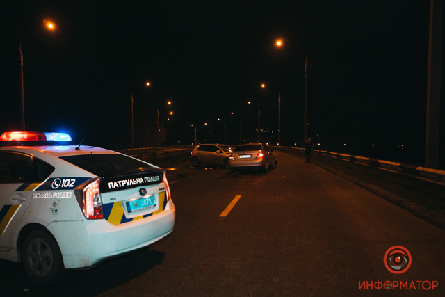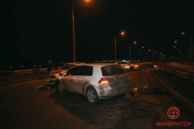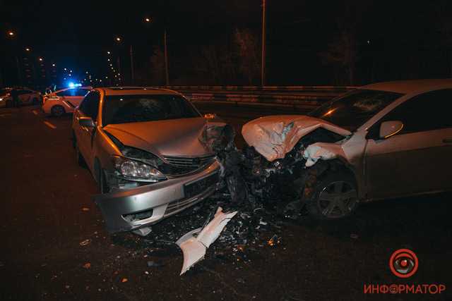 В Днепре на съезде с Южного моста столкнулись Volkswagen и Toyota: трое пострадавших