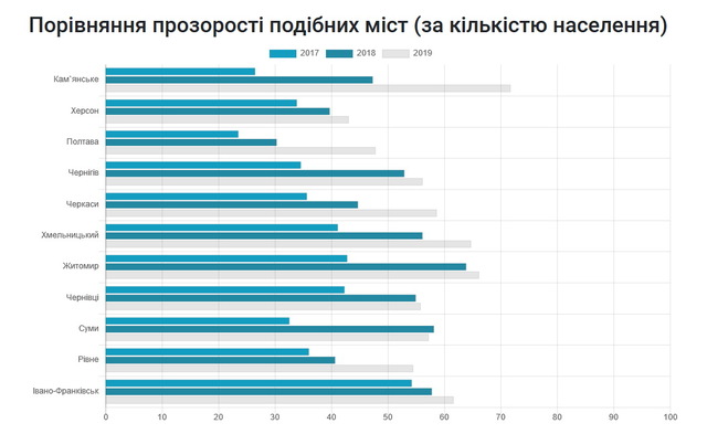 Наименее прозрачными городами этого года стали Конотоп, Светловодск, Новомосковск.