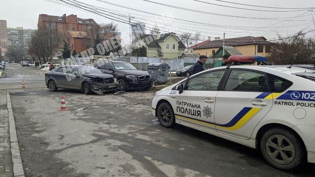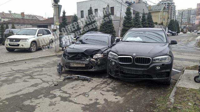 В Днепре в тихом районе, на пересечении ул. Абхазской и Великолукской столкнулись авто элитного класса - внедорожник БМВ и Форд.
