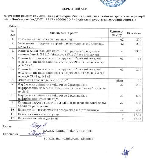 24 февраля Департамент ЖКХ Каменского подписал договор с подрядчиком. Он касался ремонта памятников, въездных знаков и поклонных крестов.