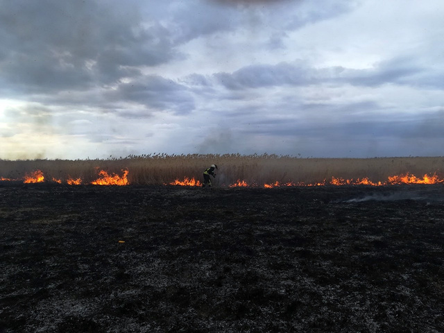 О 15:19 вогнеборці ліквідовали загорання очерету на загальній площі 4 га.