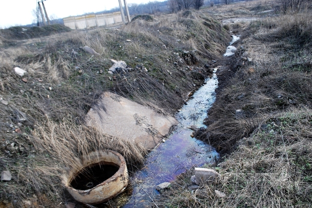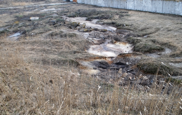 Рядом с указанным резервуаром, при этом ниже (как говорилось метров на 5) находится промплощадка. Визуально - она не относится к «Южкоксу». Журналисту бросилось в глаза, что на этой (нижней) промзоне также виден резервуар (он меньше, чем верхний) с аналогичной (по крайней мере, визуально) черной жидкостью. Судя по образовавшимся на почве рвам, и отсыпке его краев шлаком, - можно предположить, что «нижний водоем» образовался из-за протекания верхнего резервуара.