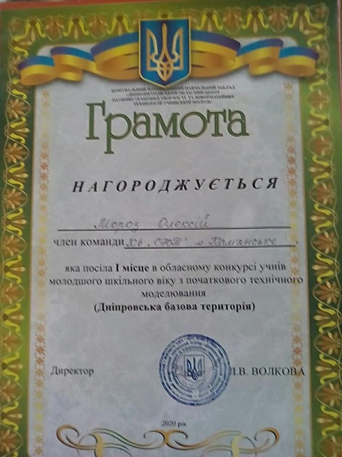 В конкурсе приняли участие кружковцы Станции юных техников города Каменское, которые стали победителями. Команда в составе воспитанников СЮТ Алексея Мороза и Кенана Алиева под руководством опытного педагога Ольги Бережной получила первое место на соревнованиях. А Кенан Алиев стал первым еще и в разделе «Дальность полета».