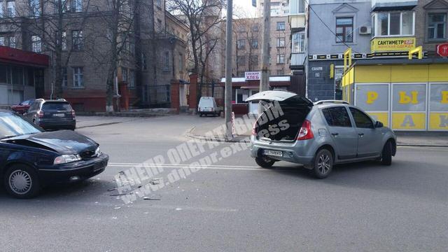 В Днепре этим утром произошла авария на ул.Титова, возле дома №27. Столкнулись Дэу Нексия и Рено. На месте аварии образовалась большая пробка.