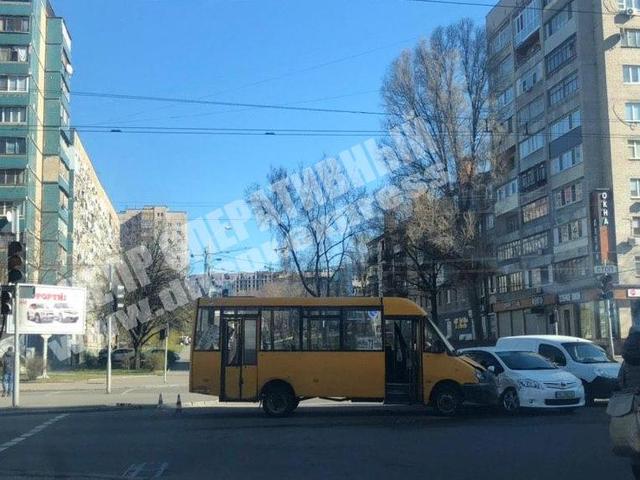 В Днепре маршрутка столкнулась с Toyota, тройное ДТП на Запорожском, грузовик снес знак