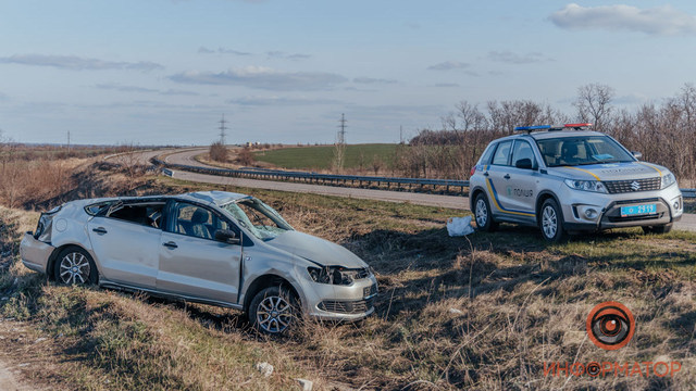 Движение на данном участке не затруднено.По предварительной информации, автомобиль Volkswagen двигался со стороны Запорожского шоссе в сторону Криворожского шоссе. Водитель объяснил, что он потерял управление из-за того, что угодил в яму на дороге. В итоге Volkswagen ударился в заграждение и несколько раз перевернулся.
