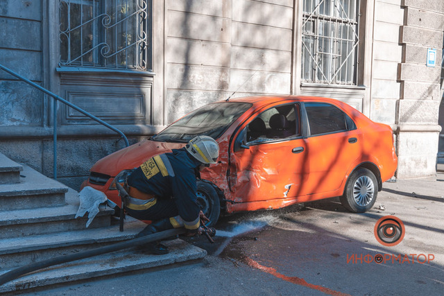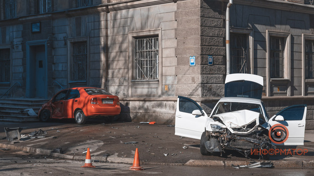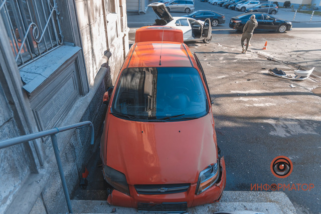 По предварительной информации от полиции, Skoda ехала по главной — по улице Паторжинского — вниз. Водитель Chevrolet, двигаясь по Жуковского со стороны проспекта, проигнорировал знак «Уступи дорогу», вследствие чего Skoda ударила Chevrolet. От удара оба автомобиля вылетели на тротуар, а Chevrolet еще и врезался в ступеньки общежития.