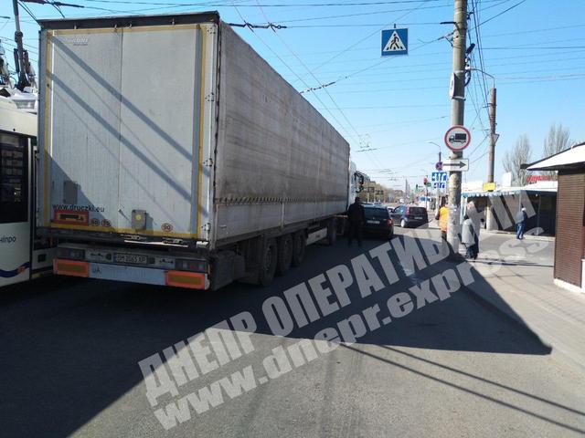 В Днепре на Березинке, около рынка, 7 апреля грузовая фура не пропустила Shkoda Octavia перед перекрестком, из-за чего и произошло столкновение.
