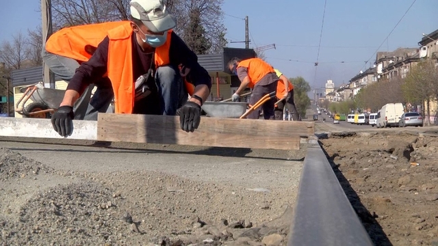 Одновременно с этим специалисты КП «Транспорт» проводят замену трамвайной линии на данном отрезке пути.