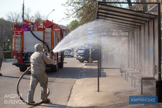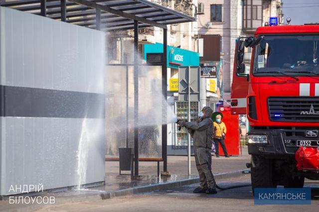 В Каменском соответствующие службы и подразделения города ежедневно проводят дезинфекцию мест массового скопления людей: улицы и тротуары, автобусные и трамвайные остановки, дома и подъезды.