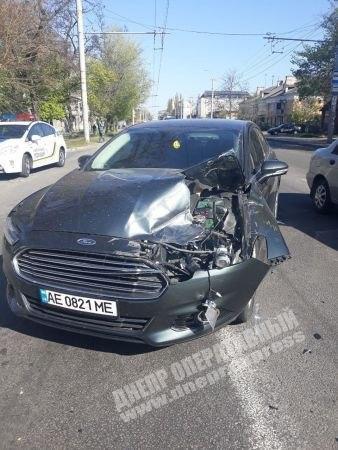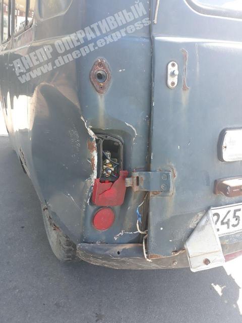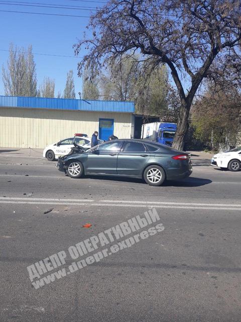 В Днепре произошло ДТП с участием автомобиля УАЗ 452 и легкового автомобиля Ford Fusion: автомобиль Ford получил значительные повреждения.