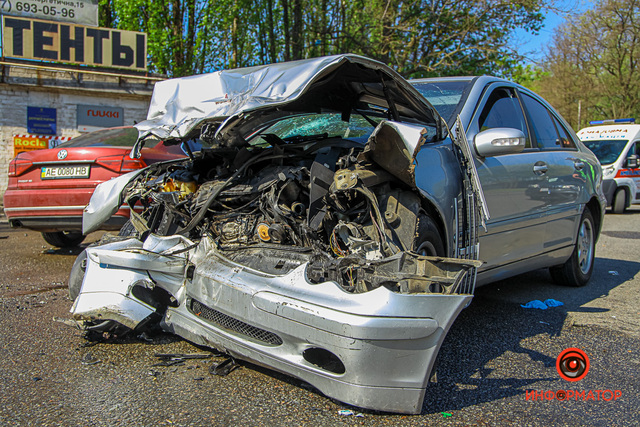 В Днепре на Энергетической столкнулись Mercedes и Volkswagen: 5 человек пострадали
