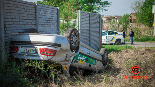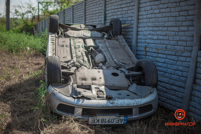 В Днепре на Широкой пьяный водитель на Mitsubishi влетел в забор: автомобиль перевернулся