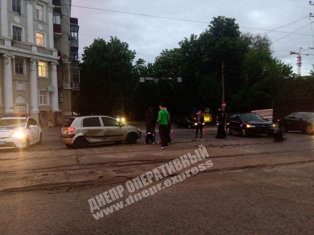 В Днепре в центре города на перекрестке легковой автомобиль Opel не уступил дорогу и врезался в легковой автомобиль Hyundai.