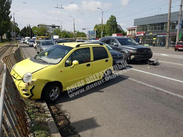 В Днепре на проспекте Гагарина произошло ДТП с участием трёх автомобилей. По предварительной информации, один из водителей не справился с управлением и протаранил машины, которые стояли на светофоре.