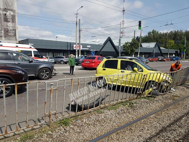 Как стало известно, инцидент произошел около 10:00. ДТП произошло на светофоре, напротив ТРЦ "NeoPlaza". Водитель Cherry не справилась с управлением, ударилась в отбойник и пролетела между Сhevrolet и Volvo. Остановить хаотичное движение Cherry смог только забор.